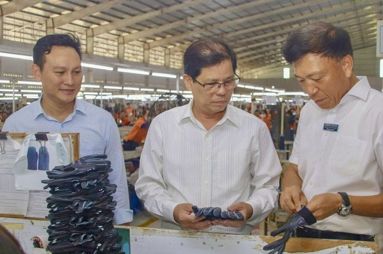 Chủ tịch UBND tỉnh Nguyễn Tấn Tuân thăm phân xưởng may găng tay thể thao của Công ty TNHH Komega-X